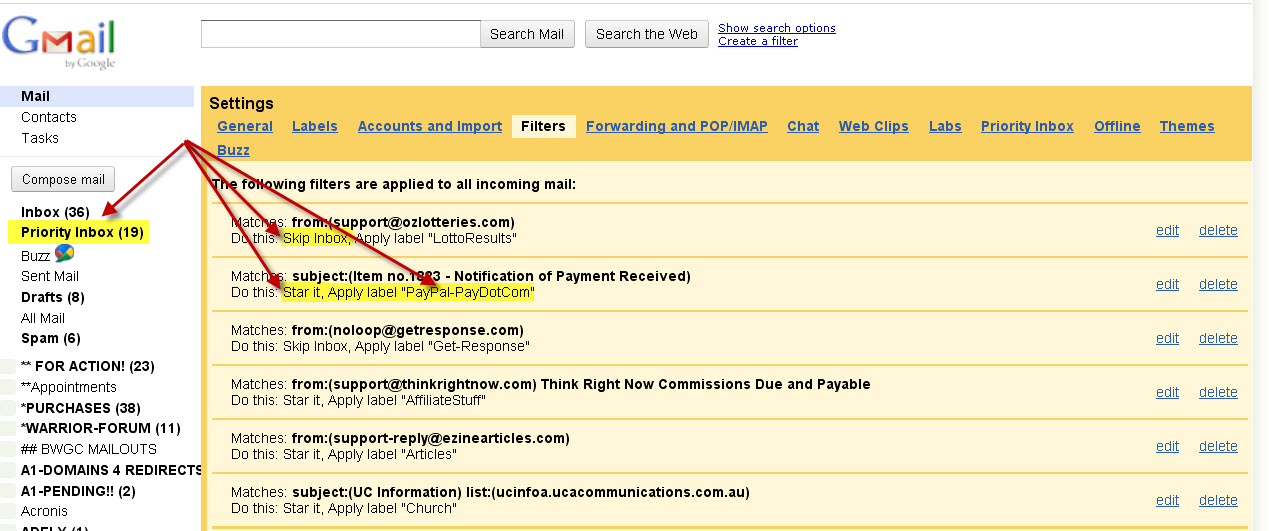 The final element of gmail is the “filters” capability. Among other things, this allows me to: